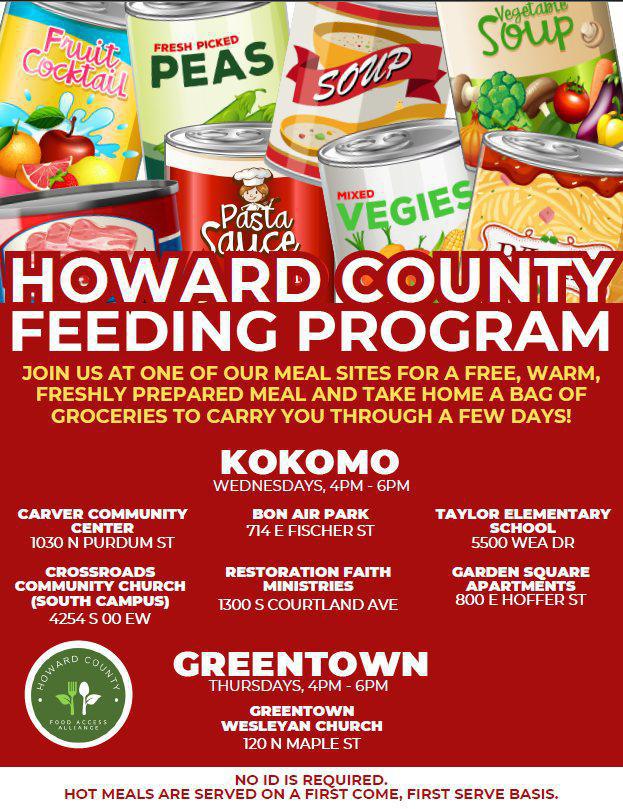 The Howard County Feeding Program has seven additional sites established throughout Howard County and will provide a hot meal at each location pick-up. Please visit the Howard County Food Access Alliance Facebook page for additional information.