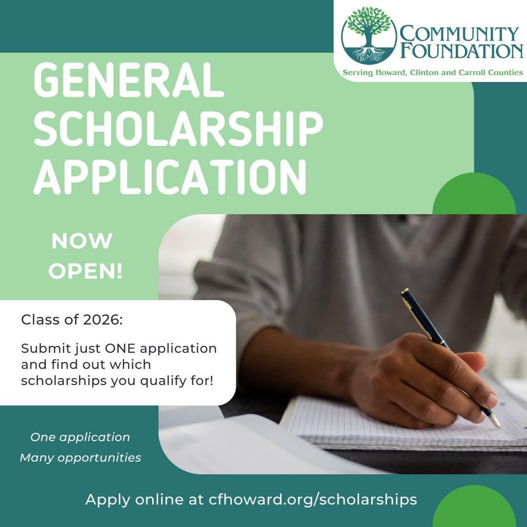 This article is brought to you by the Community Foundation Serving Howard, Clinton, and Carroll Counties. A new year brings new opportunities, and this one is just for you, Class of 2026! Our general scholarships application is available through March 1. Fill out just ONE application and you’ll then be matched to the scholarships you qualify for! Find our application portal at www.cfhoward.org/scholarships.