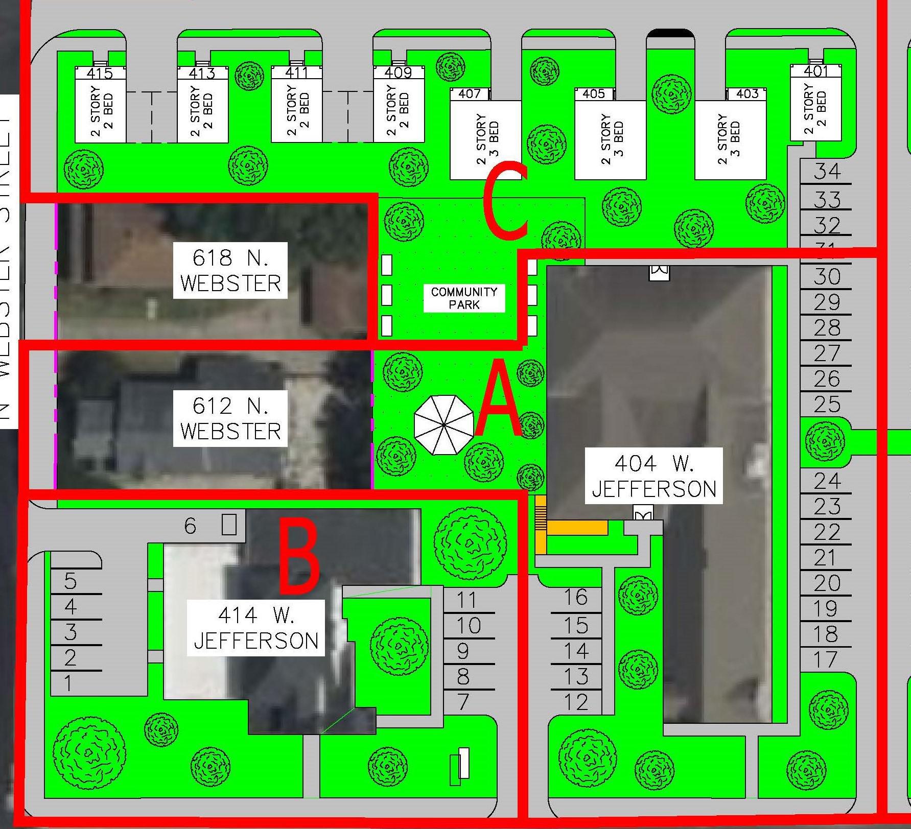 Fortune has acquired many of the properties located between Washington and Webster streets and Jefferson and Monroe streets on the northwest corner of the downtown district. The plan, developer Brandon Pitcher explained, is to develop as many as 30 duplexes and single-family homes.