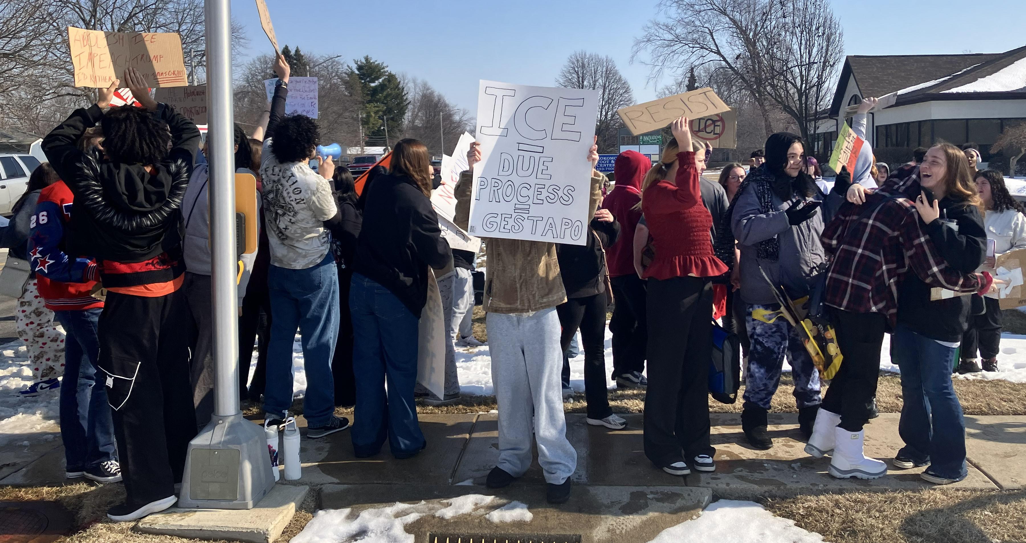 Nearly 100 students at Kokomo High School chose to walk out on Feb. 10, protesting the U.S. Immigration and Customs Enforcement (ICE) activities taking place across the nation. The teens marched along Lincoln Road in front of the high school with signs and chants expressing their displeasure.