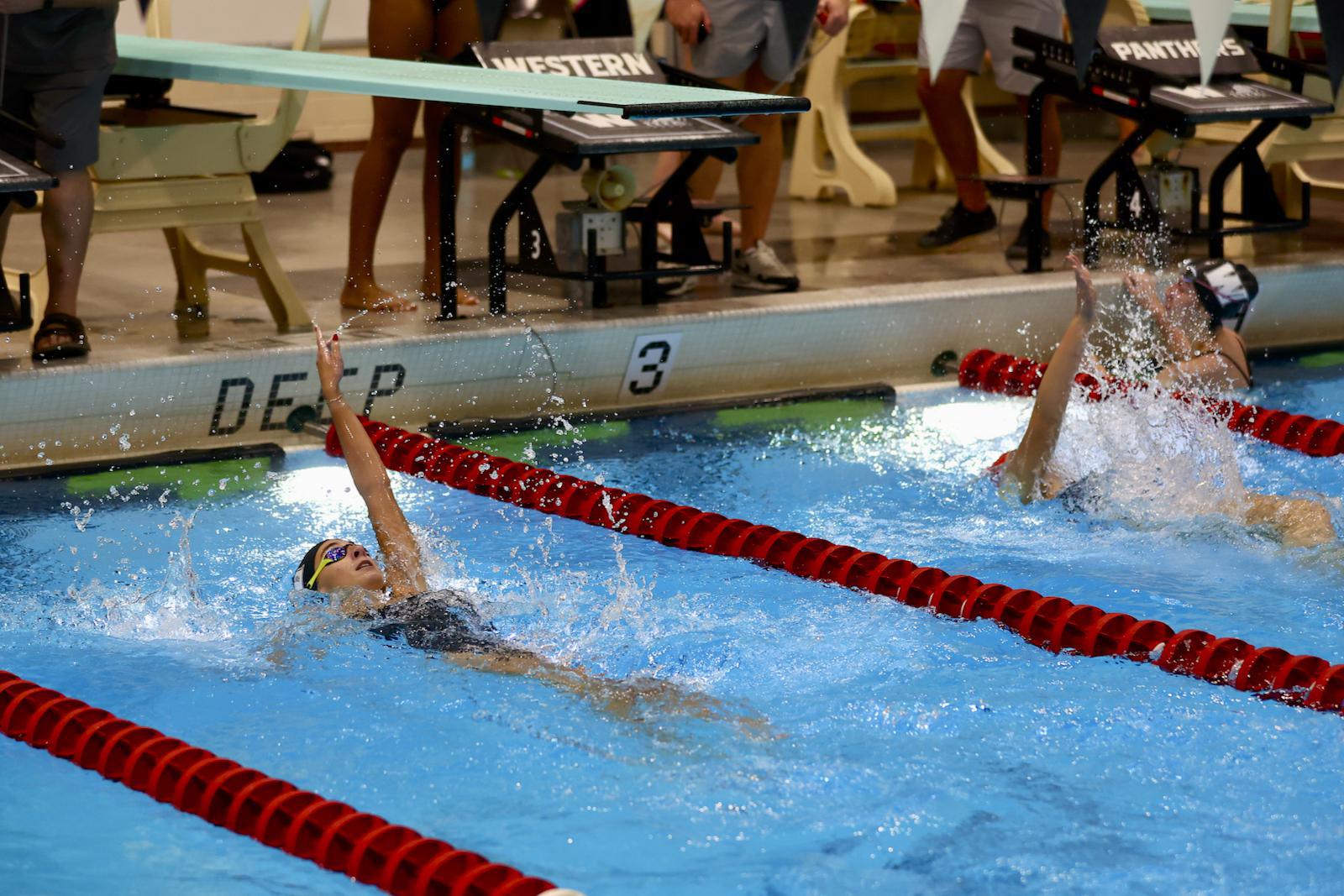 The Lady Panthers were led by performances from Emily Scott and Alayna Huskey, quadruple winners in the pool. They were joined on the winners’ podium by Cami Maddox and Lucy Schave as part of a 200-meter medley relay. Abigale DeMarco also came up big for Western with three wins.