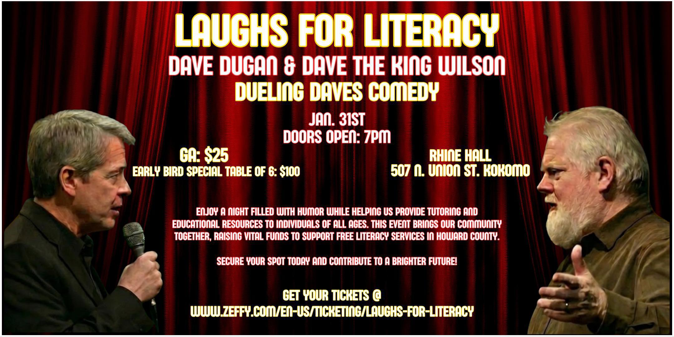 This article is brought to you by the Literacy Coalition of Howard County. Need a holiday gift that doesn’t require batteries? Give your loved ones (or yourself!) tickets to Laughs for Literacy! Join us for a hilarious night featuring two comedy giants: Dave Dugan and Dave “the King” Wilson! They’re ready to make you laugh until you cry (or at least until you need a refill).