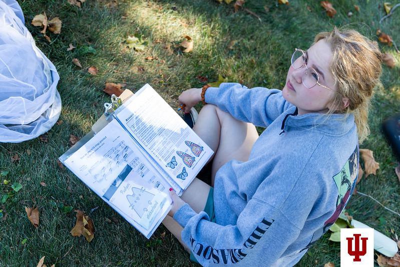 It also allows them to learn what real field work is like — that sometimes you will wait and see nothing, and sometimes, like today, you will catch a butterfly, and it won’t be the right species. The butterfly Lamberson, a sophomore from Kokomo, saw turned out to be an orange sulfur (Colias eurytheme) rather than a monarch (Danaus plexippus).