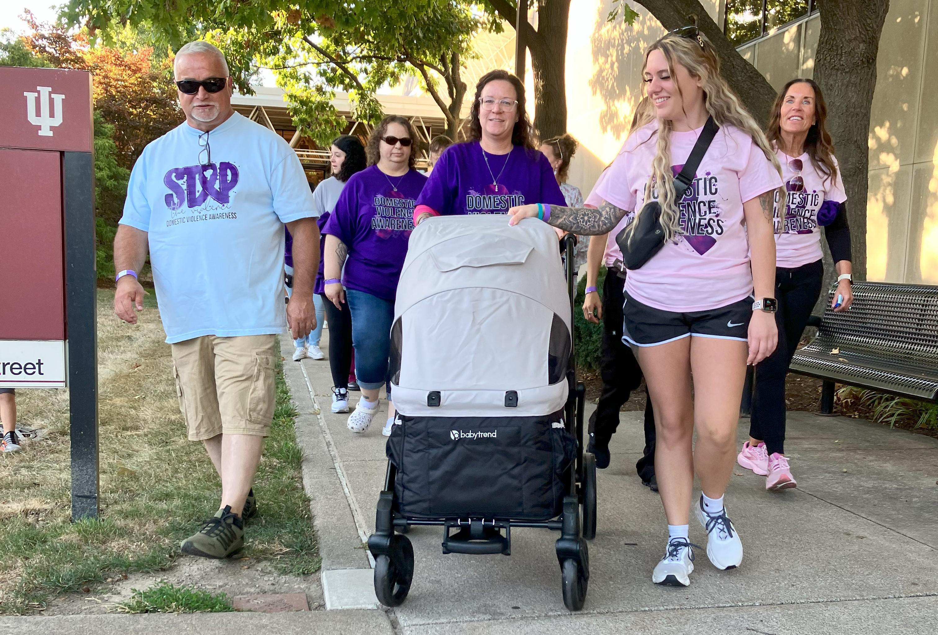 A crowd of walkers wearing pink, purple, and teal flooded into Indiana University Kokomo’s Welcome Center on Sept. 30 with a mission in mind. They were there to show support for those who have experienced domestic violence and sexual abuse.