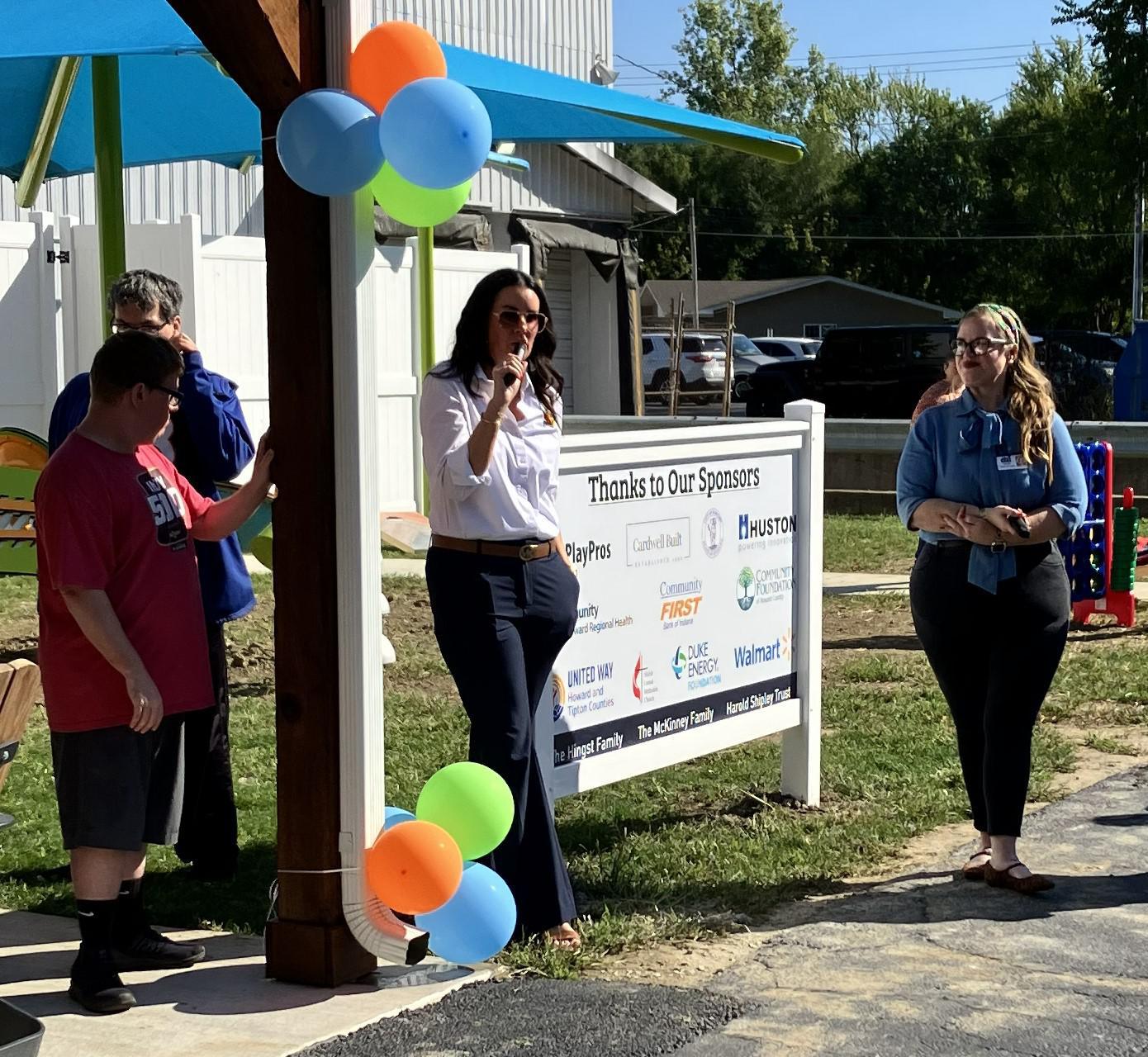 Miriam O’Malley-Long, Vice President of Business Development for DSI, took time to thank all of the sponsors and contributors to the project, including the City of Kokomo, Community First Bank of Indiana, the Community Foundation Serving Howard, Clinton, and Carroll Counties, Community Health Network, Shiloh United Methodist Church, Duke Energy, Cardwell Built, Play Pros, Huston Electric, the Walmart Foundation, the Hingst and McKinney families, and the Harold Shipley Memorial.