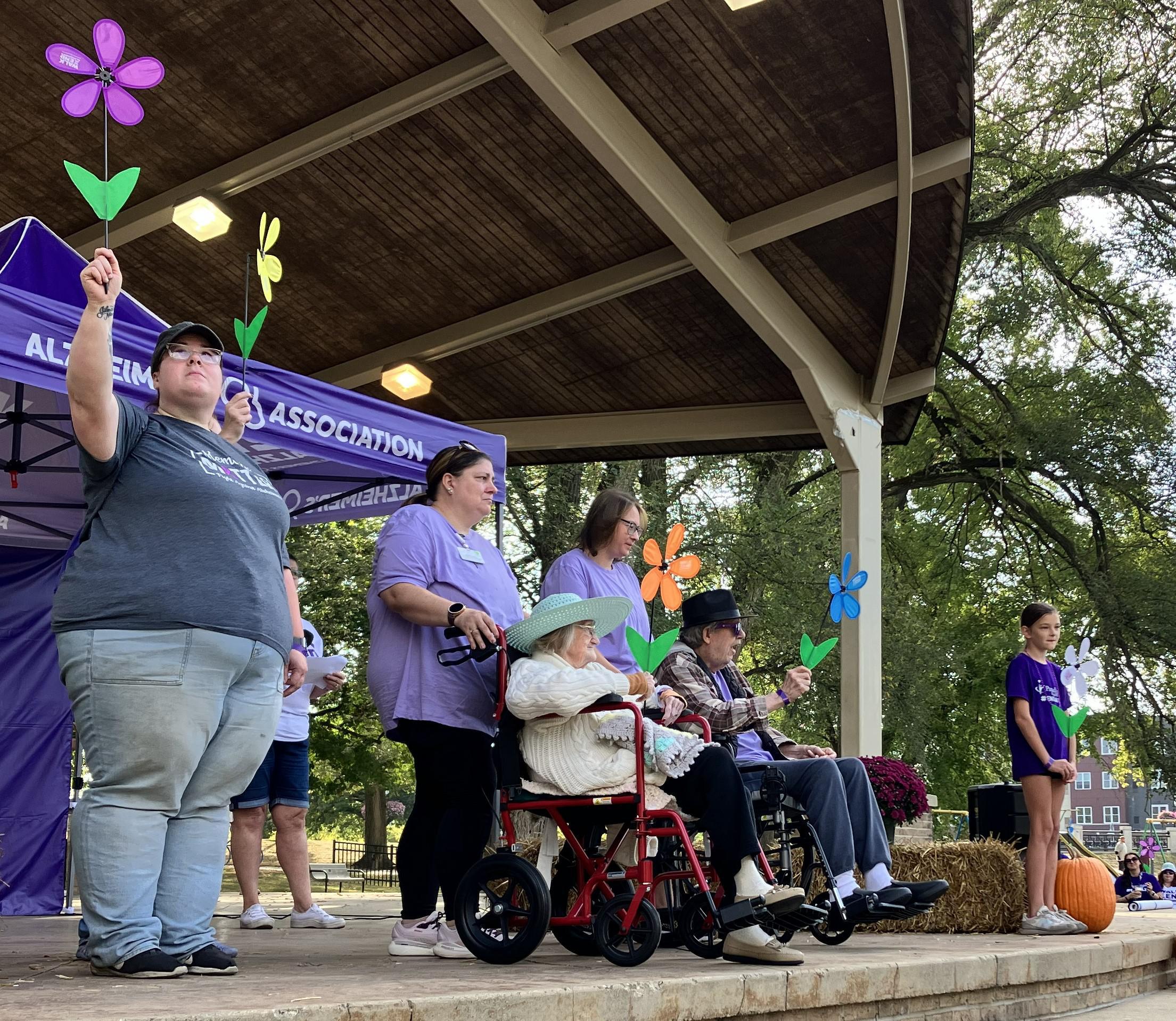 Gentry’s story was repeated in the lives of hundreds of others who gathered in Foster Park to participate in the walk on Oct. 4. Clad in purple, the many walkers turned out to raise money and awareness for the fight against Alzheimer’s and other dementias.