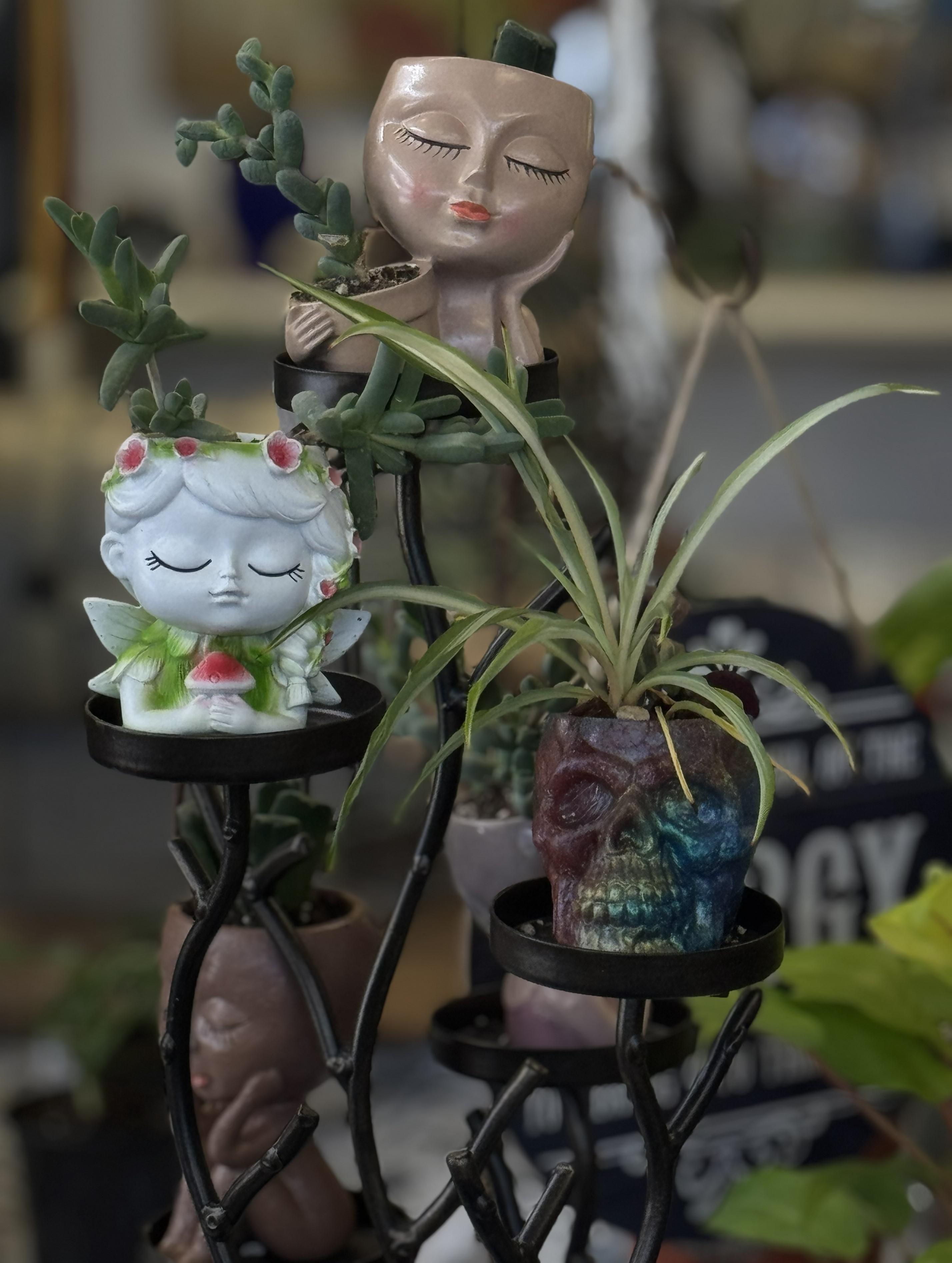 Smith said she shies away from carrying large or expensive plants because her customers typically don’t have large houses or budgets. With that in mind, Cricket’s Rocks and Roots has a variety of smaller succulents, spider plants, and ivies in stock. Additionally, Smith offers advice and assistance in maintaining houseplants.