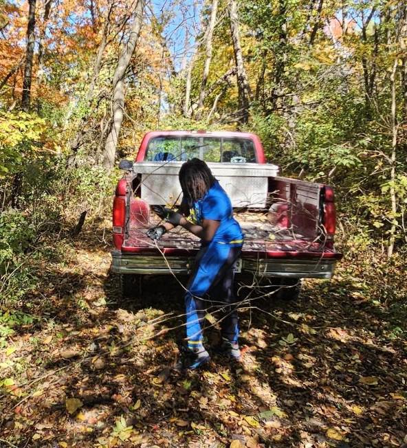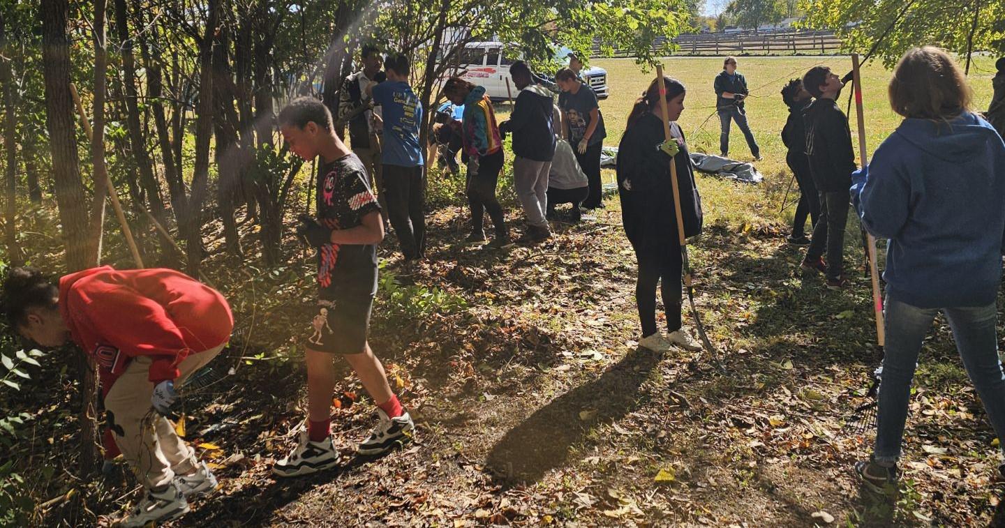 Melloh explained that the facility had a large area of overgrowth that he and Carrie envisioned for a Christmas lights walk. The kids from KUO came out and spent many hours clearing a trail.