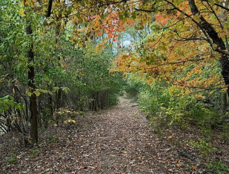 Someone would have to be a real Grinch to not appreciate Christmas lights, and what better way to enjoy them than to walk along a wooded trail, surrounded by twinkling, colorful strings of the festive decorations.