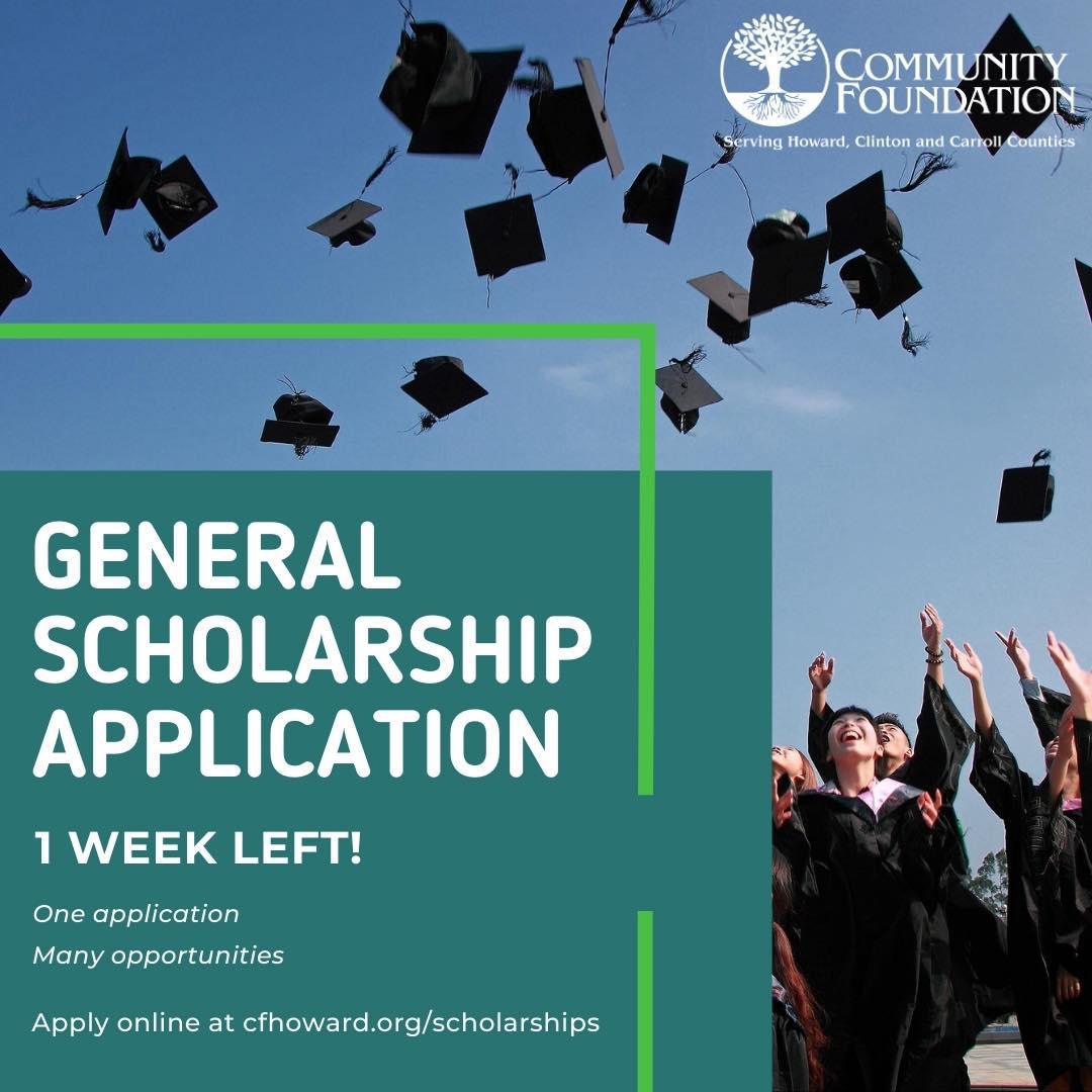 CLASS OF 2026: There are just a few days left to fill out your general scholarships application! Fill out just one application and be matched to all scholarships that you qualify for. Apply by March 1st at www.cfhoward.org/scholarships.