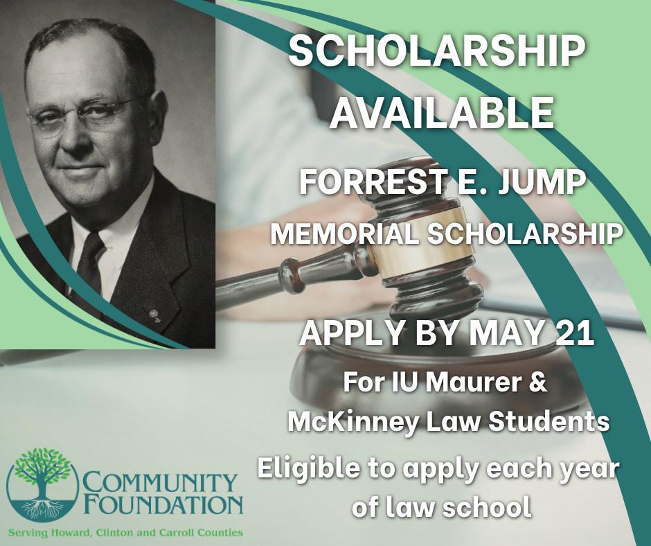 This article is brought to you by the Community Foundation Serving Howard, Clinton, and Carroll Counties. The Forrest E. Jump Memorial Scholarship supports students from Howard, Clinton and Carroll counties who are pursuing a law degree at Indiana University’s Maurer or McKinney Schools of Law.