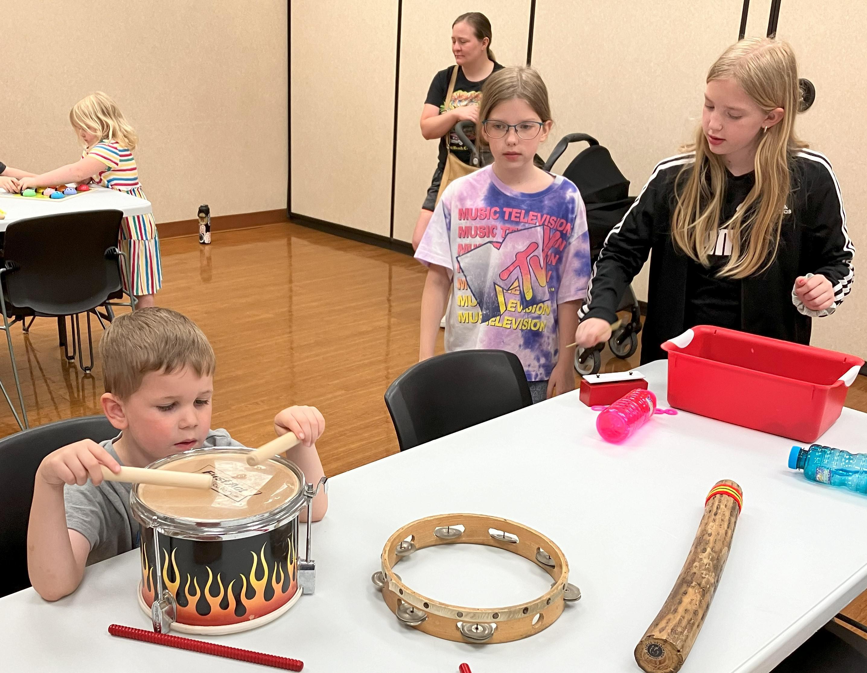 And earlier this week, patrons got a sneak peek of the Summer Reading Program through a host of sensory activities designed to tantalize eyes, ears, tongues, noses, and fingers. Kids dove into crafts, expressed themselves through drumming, sampled various sweet, salty, and sour treats, and dug their hands into sand and stones as the reading program’s upcoming features were previewed.